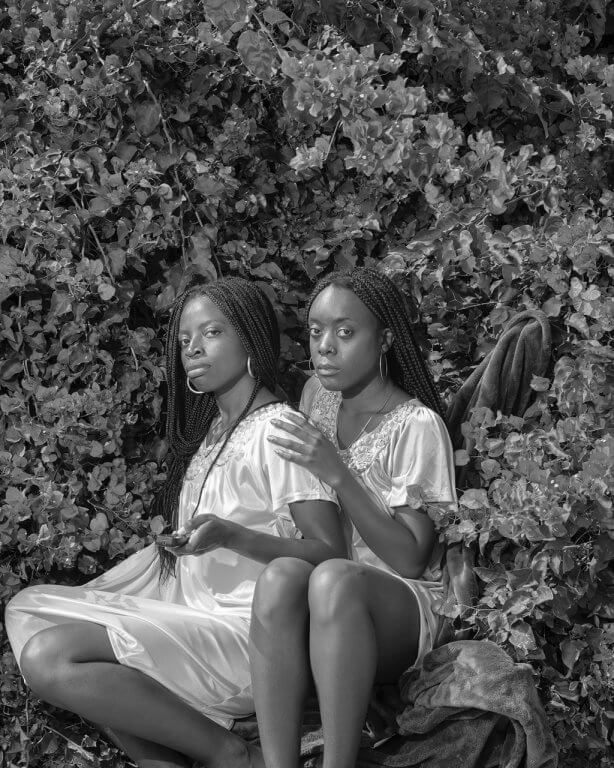 Because Cadet often places women with a strong visual similarity close together, her works contain ‘body doubles’, and she occasionally emphasizes this effect through photo edits. For instance, the acute observer will notice that a composition of forward-bending girls contains rather a lot of limbs for just two people. The photographer uses this kind of intervention to encourage us to look actively and to doubt our own perception: are these ‘twins’ actually a kind of ‘cut-and-paste’ duo? Whether the doubles refer to two friends, two sisters, two iterations of the same person, or to a dual identity, Cadet leaves open.
